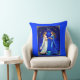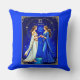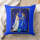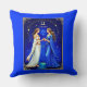 Kussen in twee etherische vrouwen die het sterrenbeeld Tweelingen vertegenwoordigen. Gekleed in elegante witte en blauwe jurken, staan ze gespiegeld en houden ze handen onder een sterrenhemel. Het Gemini-symbool verschijnt boven hen en roept hemelse harmonie en dualiteit op.