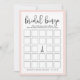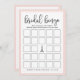 Elegante bruidsfeest spelkaart die past bij onze Paris Romance bruidsfeestcollectie en met speelse zwarte scriptletters en zachte roze roze randen met Eiffeltoren en kleine vogelaccenten. Tweezijdige kaart geeft je twee spellen in een! Voorzijde heeft Bruidsbingo en achterzijde heeft Wat zit er in je tas. Personaliseer met de naam van de bruid en de datum van het feest.
