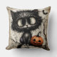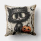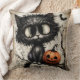Twilight Familiar: Keeper of the Crooked Branch Sierkussen Een sjofele zwarte kattenbaars in rustig verzet, zijn oversized ogen weerspiegelen de stilte van de schemering en de geheimen die het bewaakt. Daarnaast grijnst een jack-o'-lantaarn willens en wetens, werpt hij flikkeringen van sinaasappel over verwarde takken en de spookachtige fladderen van een passerende vleermuis. De achtergrond - een tapijt van oud papier en vergeten melodieën - zet het podium voor een nacht waarin betovering in de hoeken krult en elke schaduw zou kunnen spinnen.