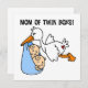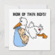 Het schattige ontwerp van de mama van Twin Boys met een ooievaar met een blauwe deken met een tweeling van de baby en een zwarte tekst met de tekst "Mam van Twin Boys!". Mam van Twin Boys-sleutelhokjes, tegels, siervoorwerpen, notitieboeken, stickers, mokken, muismatten, canvas tassen, sleutelhangers, magneten en nog veel meer!
