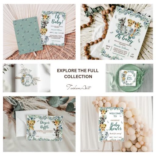 Stap in een rustige oase 🌿 waar salie greens mengen met minimalistische inrichting, het oproepen van een serene oerwoud ambiance. Vier een nieuw begin met ons boho safari baby shower thema, versierd met zachte 🐘, sierlijke 🦒, strakke 🦓 en majestueuze 🦁. Omarm de harmonie van de natuur terwijl je deze wilde en wonderlijke reis naar het ouderschap begint