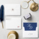 Design features a pale-cream background to the soft image of the Sacred and Immaculate Hearts of Jesus and Mary in center. Initials of bride and groom are displayed in front in an elegant, navy-blue Nuptial font. Designed to coordinate with the "Two Hearts Catholic Wedding Suite (Navy)" collection.