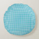 Two images of a round pillow with a blue checkered pattern. The first shows the front, the second the back. Both sides have the same design.