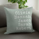 Typemachine gepersonaliseerd familie Sierkussen. Creëer uw eigen aangepaste kussen met familienamen van kinderen, ouders en huisdieren in typografie. Leuk kerstcadeau voor grootouders.