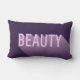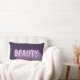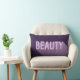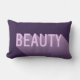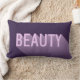 Lavender paarse kussen met een modern abstract ontwerp van het woord "Beauty" met een lange schaduwgradiënt. Voeg een leuke aanraking toe aan uw huis of slaapkamer met deze moderne kussen.