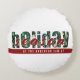 Custom Holiday Season Typography Pillow. 2 zijkanten met verschillende achtergrondkleuren. Een klassieke, traditionele en leuke "Holiday Season" typografie met Holiday letters gevuld met verschillende groene kerstpatronen met bomen, sneeuwpoppen, snoepstokken, kerstversieringen en bogen en de tekst "season" bovenop in rood waardoor een 3D-effect. Voeg uw aangepaste tekst toe onder; uw familienaam of andere. Een schattig en persoonlijk cadeau aan een kerstliefhebbende familie Zelfde typografie ontwerp op voor en achter. Beschikbaar in verschillende maten en vormen.