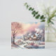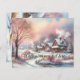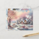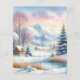 Een winterkerstlandschap met winterse sneeuwbomen, kerstbomen vol sneeuw en veel sneeuwval met een zeer schattig en uitziend huisje in het centrum, in pastelkleuren waterverf schilderij met aanpasbare naam