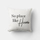 Dit werpt een kussen met "geen plek zoals thuis" in moderne typografie. Twee design in één kussen met de achterzijde omgekeerde kleuren wit op zwart.