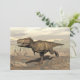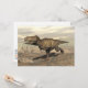 Tyrannosaurus dinosaur die op een bewolkte dag in de woestijn rijdt