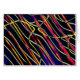 Een digitaal abstract ontwerp dat misschien doet denken aan lichte trails 's nachts, gevangen door foto's met tijdblootstelling. Deze versie is vergelijkbaar met versie 1, maar heeft meer trails. De kaart is verlaten leeg binnen, voor uw bericht of groet. De kaart kan ook verder worden aangepast.