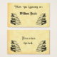 Een visitekaartje in boekplaatstijl met de tekst "Uit de Bibliotheek van" in decobrieven en ruimte voor jouw naam hieronder in Oudengelse letters voor en achter op een faux perkament achtergrond. Een eenvoudige stapel boeken in een antiek geëtste kunststijl siert het einde, allemaal in klassiek zwart-wit. Klik op Aanpassen om lettertypen, kaartgrootte, achtergrondkleuren en meer te wijzigen en zelfs uw ontwerp op te slaan voor later.