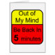 Uit mijn hoofd. Over 5 minuten ben je terug. Een lichtgeel en rood waarschuwingsteken dat de toestand van uw geest aangeeft. Een grappig T-shirt laat anderen weten dat je af en toe een paar minuten uitstapt. Maak je geen zorgen, je bent zo terug.