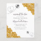 Deze uitnodiging voor het bruidsfeestje 'Meant to Bee' heeft waterverf honingraten en zoete kleine hommels die hartvormen maken terwijl ze vliegen.