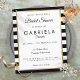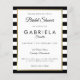 Met een klassieke achtergrond van zwarte en witte strepen heeft deze elegante uitnodiging voor een bruidsmeisjesfeest in budgetuitvoering een elegante nep-gouden folie rand die de details van het bruidsmeisjesfeest omlijst in chic lettertype. Ontworpen door Thisisnotme©