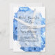 Uitnodigingen voor een vrijgezellenfeest met grote blauwe hortensia bloemen ontwerp. Een witte zeester maakt ook deel uit van het afbeelding en is verscholen in de bloemblaadjes van een lichtblauwe bloem. Pas zwarte tekst in script aan voor het feestthema en de eer. Voeg alle partijinformatie toe in het alineaformulier. Verander de tekst en gebruik deze ook voor een verlovingsfeest.