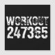 Uitstekende tekst Werkout 247365 in witte kleur met zwarte achtergrond. Ideaal voor iedereen die optilt, fitness, training, bodybuilding en naar de gym gaat.