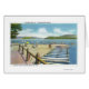 Het Schroon Lake, New York - Uitzicht van Beach en Pier van Scaroon Manor - Schroon Lake, NY werd in 1942 opgericht. Dit afbeelding toont scènes van het Schroon Lake, NY.