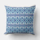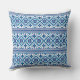 Ukrainian traditional vushuvanka folk pattern throw pillow. Dark blue and light blue colour pattern.