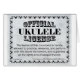 Officiële Ukulele-licentie. Er zijn veel activiteiten waarbij diverse apparatuur betrokken is, zoals het bedienen van een auto, een vliegtuig, enz., die gespecialiseerde training en licenties vereisen. Het maken van muziek is iets dat gewoonlijk opleiding vereist: lessen, praktijk, en repetities. Moet van de potentiële muzikanten niet worden geëist dat zij een vergunning krijgen om de apparatuur te bedienen, d.w.z. hun muziekinstrument?
