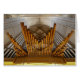 Een close-up uitzicht van de pijpen van het Walcker-orgaan in Ulm Munster, Duitsland, die naar het plafond kijkt.