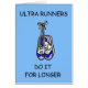 Een paar cartoons die schoenen trainen op een blauw achtergrond en de woorden "Ultra runners doen het langer".