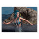 Schattigee ultramarijn zeemeermin met blauw haar op een fantasie oceaan en een kust achtergrond