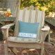 Diep Aqua Blue en White kussen voor buitenzitplaatsen. Timeless Deep Aqua Blue kussen met Boat Name, Beach House Name of Beach Resort Name sjabloon. Boat Name placement aan beide zijden. Boat Name kussens zijn mooie cadeauideeën voor haar en hem, boetseerders en zeelieden. #ybeedesign #ybeesea #aquabluepillows #nauticalpillows Elegant patio dek decoratie ideeën gemaakt van oceaanliefde © Design y.BEE ZEE