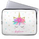 Deze eenhoornlaptophoes is voorzien van een driedubbele eenzijdige vormgeving met bloemen, sterren en faux gouden glitter Personaliseer deze laptop met een naam.