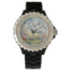 Een horloge met een dromerig afbeelding van een witte eenhoorn met een regenboogmanen staande in een bloemenveld. Op de achtergrond zijn majestueuze bergen. Het perfecte geschenk om degenen die houden van magische en mystieke eenhoorns te geven. Bevat generatieve inhoud.