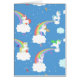 Vector getekende baby eenhoorns uit de lucht onder regenbogen en vlinders in dit grillige ontwerp.