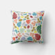 Moderne graphics in vlakke ontwerpstijl. Bladeren, diamanten, korrels en organische vormen. Rood, oranje, groen, blauw, lavender. Uniek Oranje rood Sierkussen in de Stedelijke Trendy.