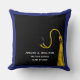 Creative afstuderen cadeau, met klassiek zwart pet en gouden kwastje op een blauwe achtergrond. Bewerk tekst om de naam van de afgestudeerde toe te voegen.