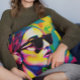 Unieke kleurrijke dame in zonnebril kunst kussen
