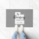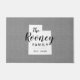 Moderne boerenboerengepersonaliseerde doormat met je familienaam in je staatskaart. Faux burlap canvastextuurachtergrond. Klik op Aanpassen om uw eigen tekst en afbeeldingen toe te voegen en een uniek ontwerp te creëer!