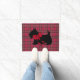 Een Schotse Terrier met een grote rode boog versiert deze feestelijke deurmat.