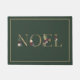 Deze bosgroene deurmat is een traditionele vakantiedormat met moderne accenten en is voorzien van de letters NOEL die zijn geschreven in gouden serif-letters, verfraaid met bordeauxrode, blauwe en bleke roze waterverven en groen achter de rug. Een bijpassende gouden lijn rand lijsten de tekst.