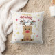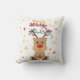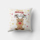 Schattigee rendieren gooien kussen voor de feestdagen. Kleurrijke kastanjebruine/rode en gouden vakantiekleuren. U kunt het rendier personaliseren met jouw naam of achternaam.