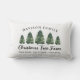 Aangepast Boerderij voor kerstbomen met rechthoekige lendenaccentuering in groene, koolzuurgrijze en witte kleuren. Hij is uitgerust met een modern rustisch typografisch ontwerp met drie verse groene kerstbomen met waterverf. Pas aan met uw familienaam, plaats, en andere douanetekst aan. Het tweezijdige ontwerp maakt een uniek gepersonaliseerd accent op uw boerderijvakantiedeeg.