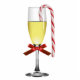 Uitstekende digitale grafische kaart van een gevuld wijnglas gemaakt tot een kerstversiering. Het glas is feestelijk versierd met een rode satijnachtige buiging, op de stengel en een snoepriet die op de velg van het glas rust. Zeer versiering die er goed uit zou zien op elke boom, en die een geweldig ornament-geschenk maakt.
