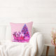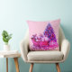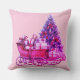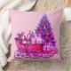roze slee Sierkussen. Boerderij Vintage Kerstslee. slee met Cadeaus en boompjes allemaal in roze interieur. Retro Vakantie Roze Sleigh.