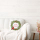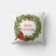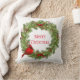 Dit vakantiekussen wordt getoond met een feestelijke kerstvakantie bessenkrans en kardinale print. Pas dit object aan of koop het object zoals het is.