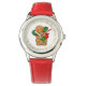 Kinder vakantieklanten worden getoond in roestvrij staal met een kerstfeestelijke kerstontbijtkoek. Rode strop. Pas dit horloge aan of koop zoals is.