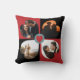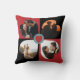 Gepersonaliseerde Valentijnsdag gooi kussen met 4 hartvormige foto's op rode en zwarte achtergrond.