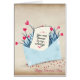 rode hartbloemen op liefdesbriefje in blauwe envelop illustratie met romantisch vers