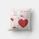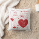 Een kussen ontworpen met een twee namen valentijn patroon, rood op wit. Pas het kussen aan met je hartennamen, achtergrondkleur, onder andere opties.