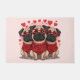 Schattigee illustratie van Pughonden gekleed in rood en roze voor Valentijnsdag. Ideaal voor dierenliefhebbers in de Valentijnsdag.