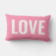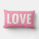 Valentijnse roze liefdesTypografie Outdoor Lumbar Pillow is modern, eenvoudig ontworpen met aanpasbare roze achtergrond. U kunt aan om het even welke kleur aanpassen u wenst. Het woord "LOVE" staat in vet wit, eenvoudig op de voor- en achterkant van de kussen. Het maakt een schattig Valentijnsdag thuis decor voor een bank of stoel om je veranda of terrasse ruimte af te zetten.