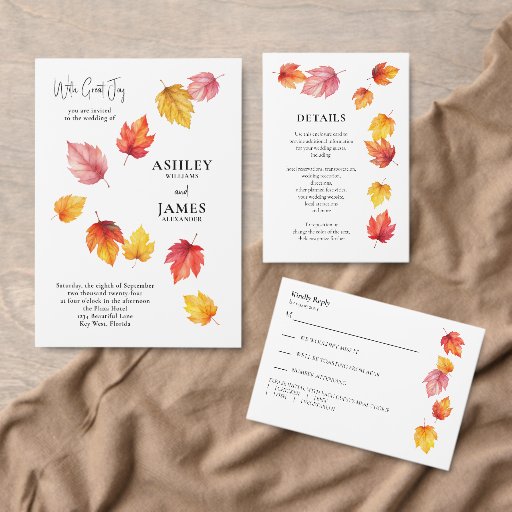 Het ontwerp is voorzien van vallende herfstbladeren en waterverven, en u kunt alle tekst aanpassen. Pas de gewenste nummers aan en voeg één kaart per keer toe aan uw winkelwagentje. Coördineren van beschikbare items.