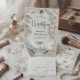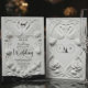 Geef de toon aan voor een formele lenteviering met dit tijdloze ontwerp met een gebeeldhouwde bloemenlook. Een luxueuze esthetiek voor de klassieke romantische bruid. Dit ontwerp heeft een verfijnd monochroom palet van zacht wit en warm ivoor. De kunst simuleert een hoogwaardige gebeeldhouwde reliëf, met weelderige rozen en tulpenknoppen verweven met sierlijke krullen en gebogen bloemen. Een decoratief rechthoekig kader omlijst de tekst, die romantisch kalligrafisch schrift combineert met traditionele serif typografie voor een formeel uiterlijk. Dit is een vlak gedrukt beeld met een nep-reliëfeffect, geen echt verhoogd materiaal.