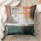 Het originele kunstwerk van ZoeSPEAK op dit Sierkussen is gemaakt van een originele foto van het interieur van een treinstation. De middagzon verlicht het witte loket met zijn gele bloemen en donkergroene basis en schijnt over het verre raam tussen de perzikkleurige muren.